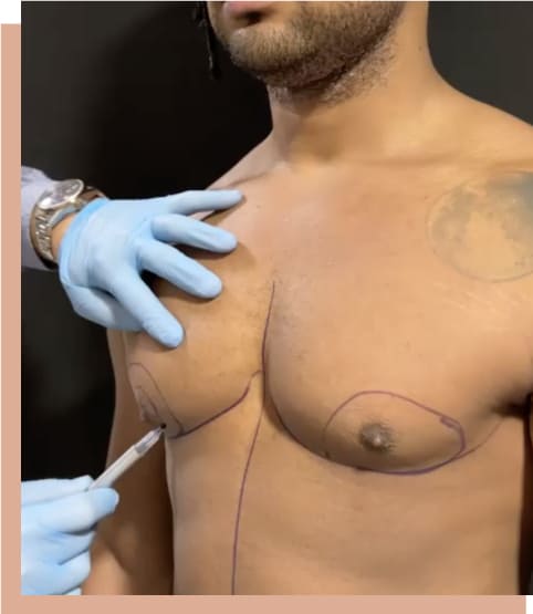 Your surgeon will make strategically placed incisions, typically around the edge of the areola or in discreet areas of the chest, to access the underlying tissue. For cases requiring liposuction, small incisions are used to minimize visible scarring.