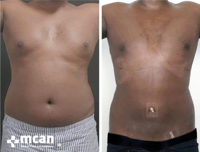 Excess glandular tissue, fat, or both are removed to create a more proportional chest. Liposuction may be used for fat removal, while excision techniques address glandular tissue and excess skin. This combination is ideal for achieving a smooth, natural-looking result.