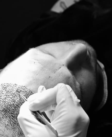 Это формирование микрорезов, в которые будут вживлены волосяные фолликулы. Эти разрезы представляют собой очень тонкие щели и наносятся в зависимости от ширины и длины графтов при пересадке волос методом FUE.
